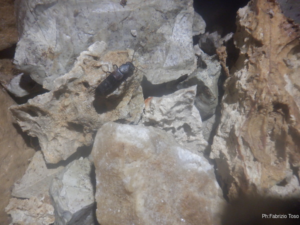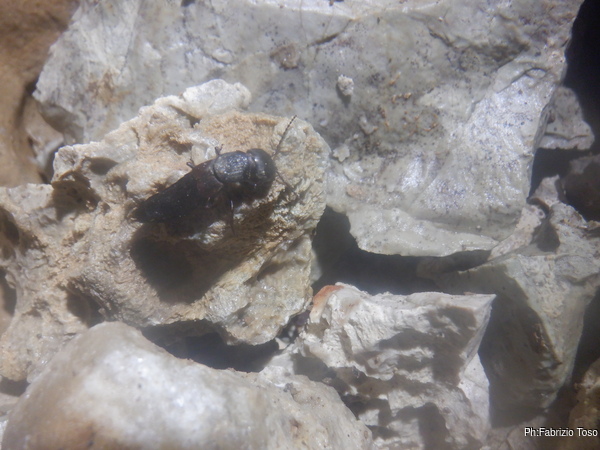 Dopo il P50 passo alla base del P25 e mi fermo per bere un goccio d’acqua. Mi cade l’occhio su un “bacarozzo” che si aggira nei pressi e lo riprendo nel caso qualche amante del genere volesse un giorno dirmi di che animale si tratta.