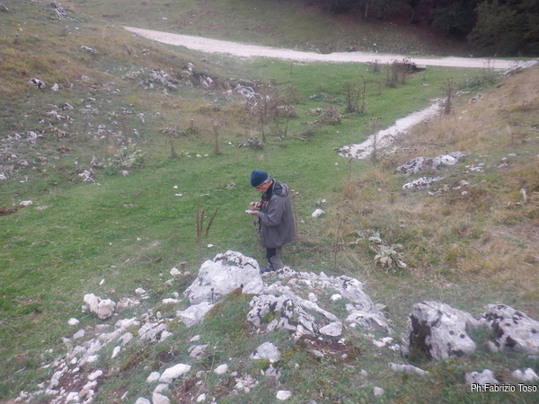 Con Gabriele andiamo a ricercare una grotta, il pozzo di Campo Minio dove eravamo gia’ stati anni fa in occasione di un corso pratico sull’utilizzo del GPS.