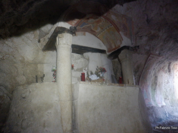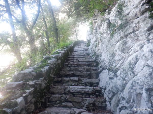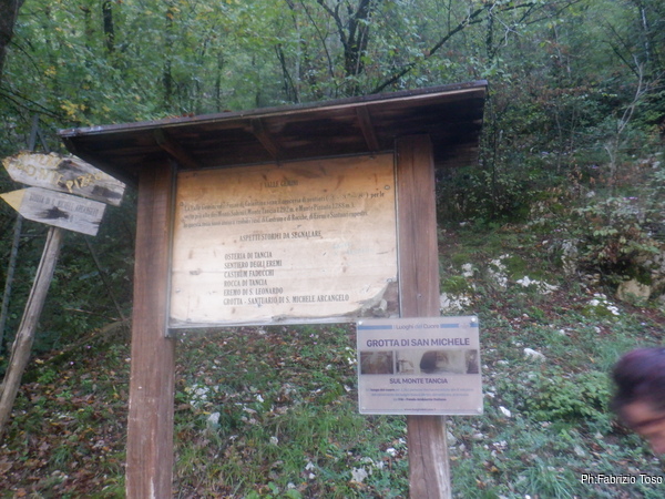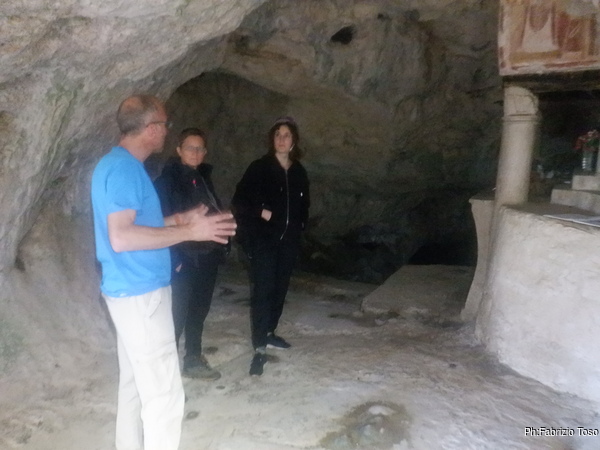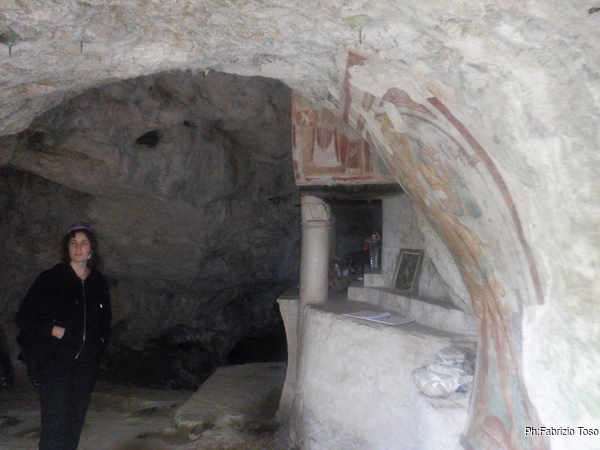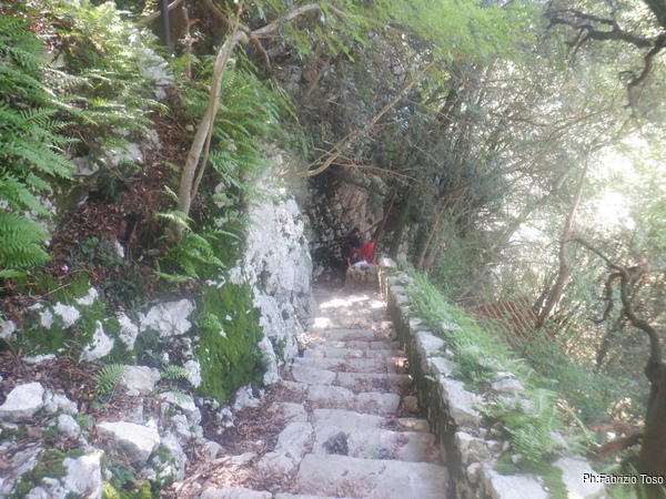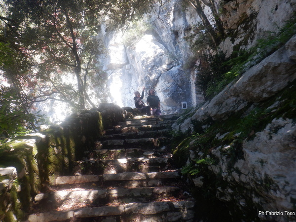 Raccatto il materiale, arruolo al volo Fabio come aiutante e saliamo le scale che portano alla grotta di S. Michele.