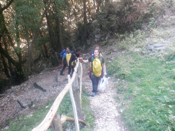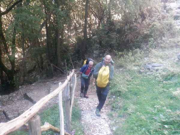 Sono pronto! Carico il mio amato quanto mastodontico zaino sulle spalle e tutti insieme appassionatamente prendiamo il sentiero che ci condurra’ alla meta.