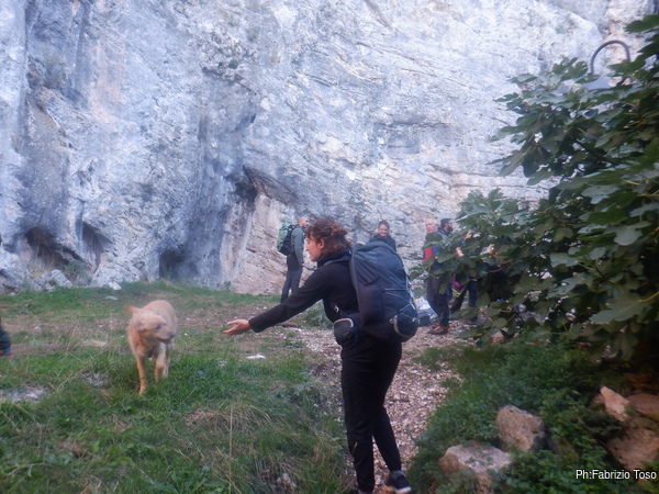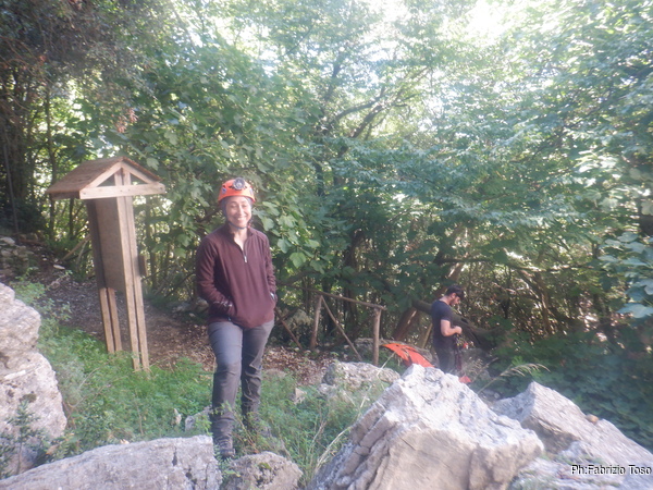 La mattina verso le 8 Betta, io e Luna arriviamo al solito punto, quello dove si lasciano le auto e si prende a piedi il sentiero che porta alla grotta di S. Michele e all’adiacente parete che usiamo per fare esercizi speleo su corda. Dopo il parcheggio Netta ci viene incontro, anche lei venuta in anticipo. Scambiamo qualche parola mentre mi cambio.