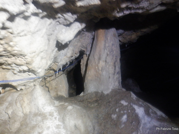 Con mio stupore trovo che dopo l’altare nella sala principale, la grotta si sviluppa in un altra piccola sala dal soffitto basso con almeno tre arrivi che sarebbero da esaminare con piu’ attenzione.