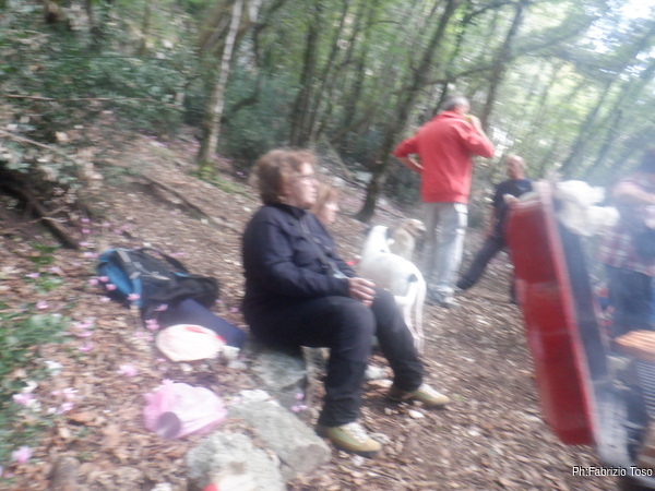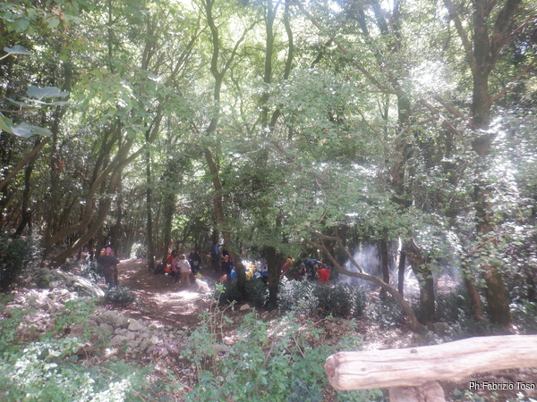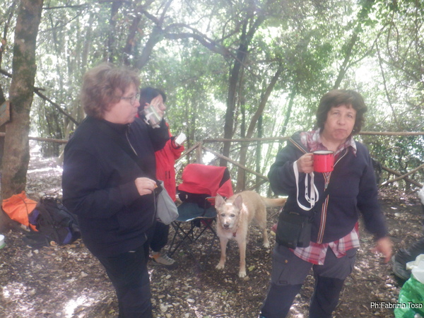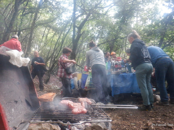 Passo di nuovo a vedere se nell’angolino di Betta vada tutto bene e trovo la sua postazione desolatamente deserta. Mi affaccio allo spiazzo subito sotto, quello dove abbiamo deciso di fare cambusa e cucina. Noto con piacere che l’organizzazione del pranzo e’ in pieno svolgimento. Con molto interesse e piacere vado subito a raggiungere quell’allegra combriccola.