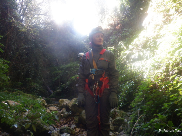 Fatta la doverosa visita al pozzo Marilu’ si prende la via del ritorno in fila indiana. Nel tornare indietro Marta decide di provare l’ebbrezza del tuffo nella pozza, purtroppo non mi avverte delle sue intenzioni quindi non faccio a tempo a riprendere il suo elegante carpiato. Esce dall’acqua per nulla turbata e, a suo dire, nemmeno infreddolita.