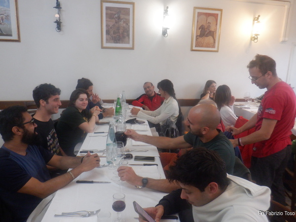 Eccoci tutti a tavola per un allegro pranzo. I nostri amici della Sbirra non hanno avuto cuore di abbandonarci affamati anche se ci siamo presentati a ora di merenda. Grazie!