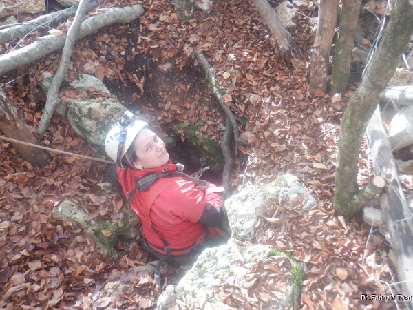 Come padrone di casa faccio le presentazioni tra la grotta e i miei amici, le ultime raccomandazioni sui punti dove fare attenzione poi iniziamo a scendere. Per primi entrano Giulio e Alessio, poi va avanti Barbara.