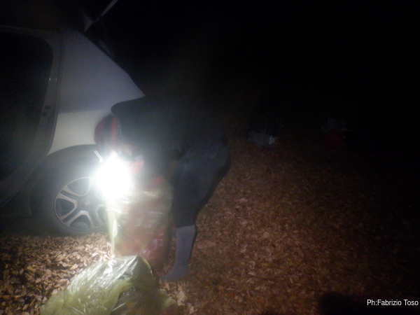 Tutti cambiati, tutti riconciliati col freddo sistemiamo gli zaini in auto e partiamo alla volta di Livata alla ricerca di un bar. Li troviamo tutti e due chiusi ma in quello in basso accettano ordinazioni le pizze tonde da asporto. Con una occhiata Giulio ed io siamo d’accordo per ordinarla. Alessio decide che preferisce cenare a casa mentre Barbara e Giuseppe, che devono fare tanta strada per tornare a casa, decidono di avviarsi. Ci salutiamo ringraziandoli e poi ci dedichiamo alla pizza.