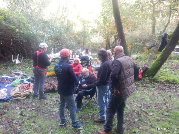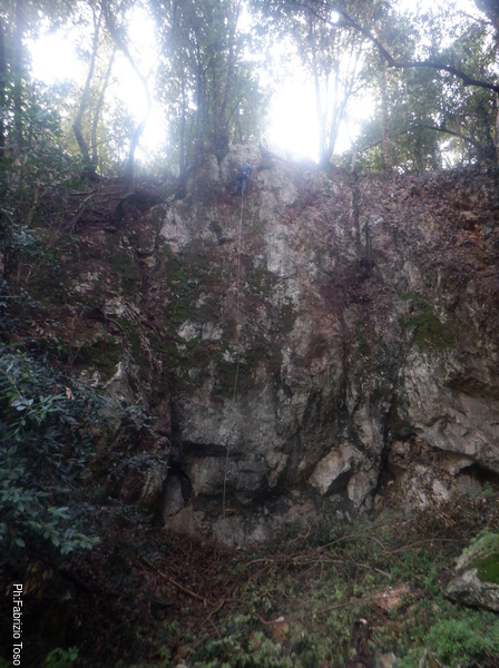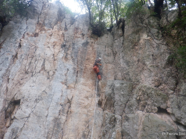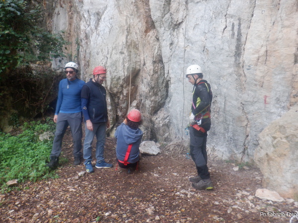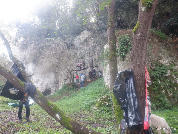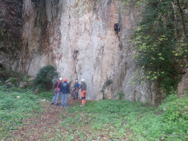 Luca e’ gia’ pronto quindi lo spedisco subito a preparare le vie dove far esercitare i suoi amici aspiranti speleo.