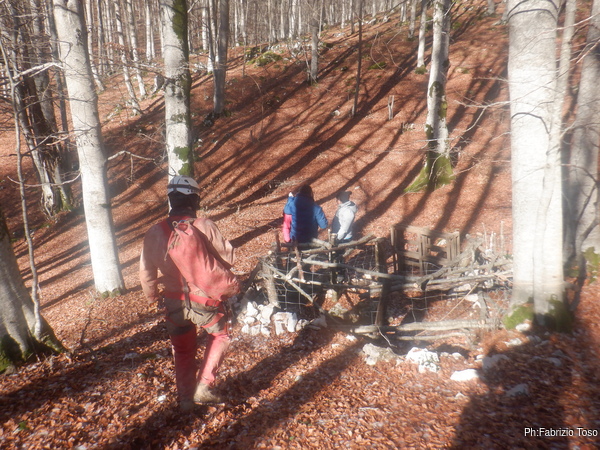 Ci siamo divisi in due gruppi, uno esplorativo in grotta e uno esplorativo in superficie, infatti io Claudio Gabriele e Laura siamo andati a fare una ricognizione superficiale per trovare una grotta segnalata da Nerone che sarebbe stata da ricontrollare anche per fare il rilievo.