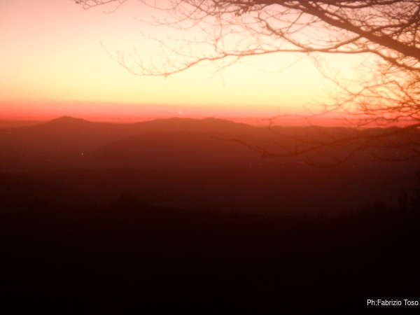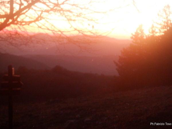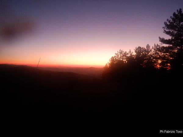 Una volta cambiati anche Luca ed io, passiamo a sistemare i materiali da riportare indietro poi prendiamo le auto dirigendoci decisi e compatti a Livata per una sosta al bar. Urge bere qualcosa di caldo. Strada facendo Claudio si ferma per ammirare il tramonto e scattare qualche foto, lo imito.