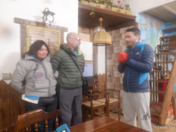 Tra una chiacchiera e l’altra terminiamo di aggiornarci reciprocamente sulla giornata appena passata. In questo momento approfitto per estorcere le promesse di una relazione. Rimane solo da decidere come concludere la giornata. Gira insistente la proposta di andare a Marano Equo al ristorante da Antonia ma Linda e Angelo andranno in grotta anche domani quindi rinunciano, di conseguenza devono rinunciare a malincuore anche Silvana e Luciano poiche’ sono in una sola macchina, peccato. Il resto del gruppo pero’ decide compatto, concluderemo con un bel piatto di fettuccine!