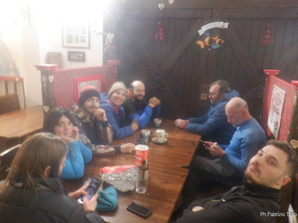 Rapidamente ci cambiamo, e quando anche Bibbo e Luca sono pronti recuperiamo Gabriele e gli altri, rimasti in esterno, per andare a scambiarci le informazioni davanti ad una cioccolata calda (troppo freddo per la classica birra).