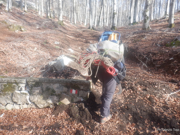 Appena pronti Nerone col suo zaino autocostruito ci fa strada verso la grotta.