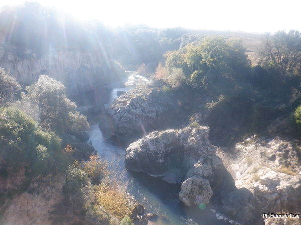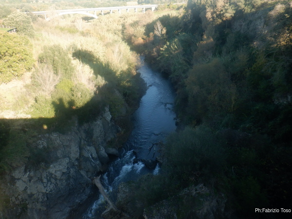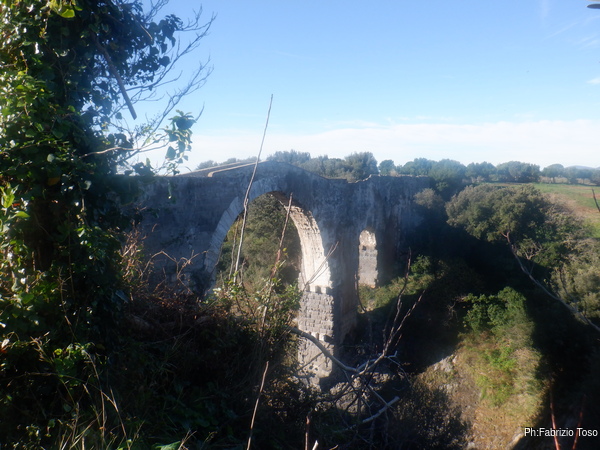 Ci saliamo e ci fermiamo in mezzo per ammirare il fiume Fiora che scorre sotto di noi.