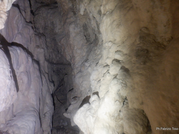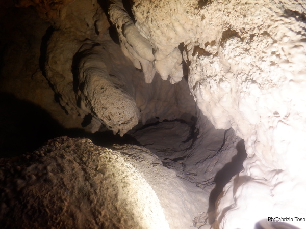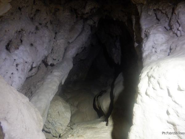 Ancora piu’ a destra c’e’ un altro buco, vado a darci uno sguardo. Dopo un ingresso ampio si stringe in un cunicolo che sarebbe da vedere meglio ma una cacca di qualche animale posata proprio in mezzo al passaggio mi convince a desistere. La indico ai miei amici prima di muovermi per altri posti ma nessuno prende atto della mia scoperta quindi, anche se probabilmente sarebbe catastabile, ritorna presto nell’oblio.
