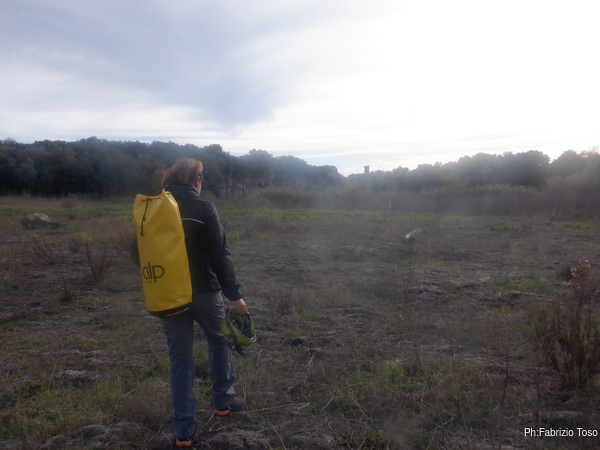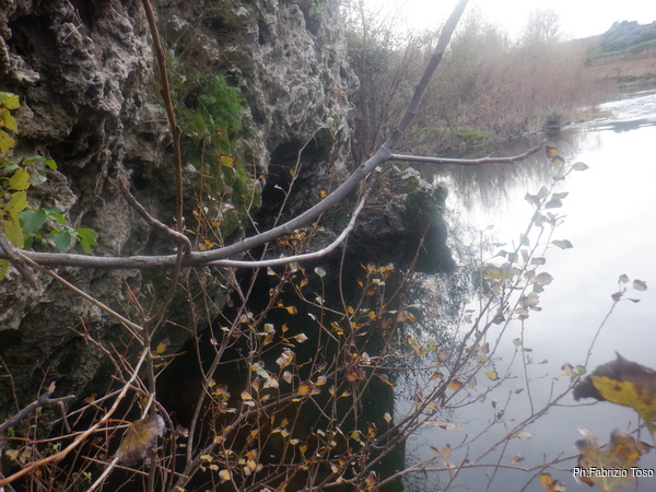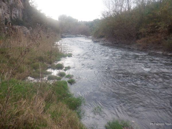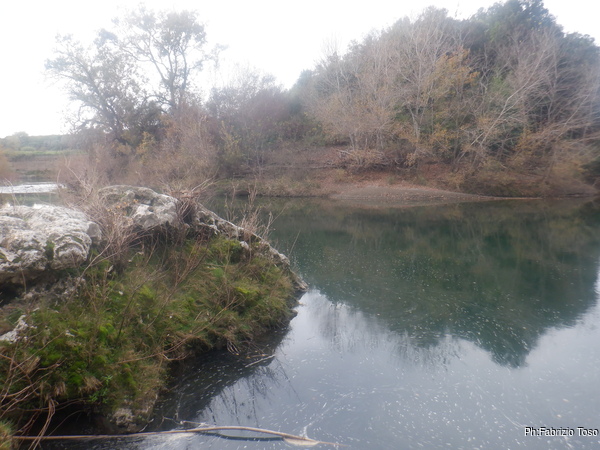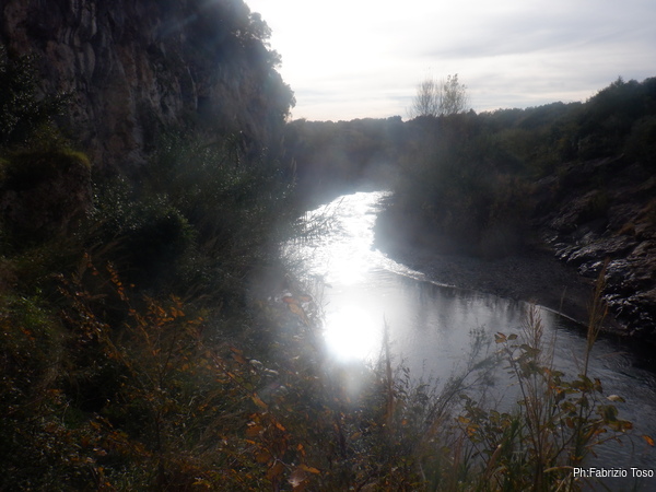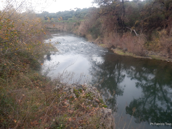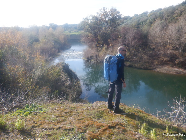 Eccoci al fiume Fiora, Gabriele e’ avanti e si dirige senza indugi in un punto che avevano visto nella precedente visita.