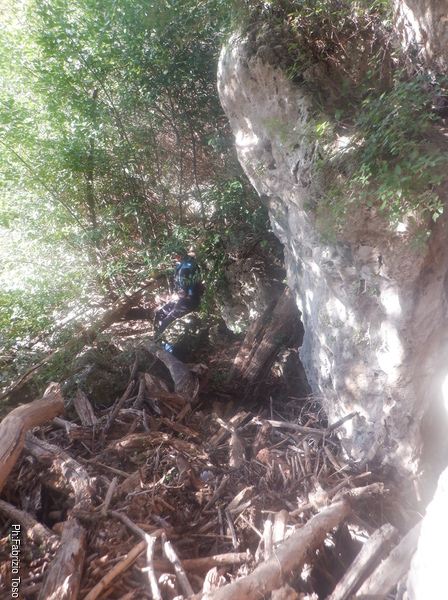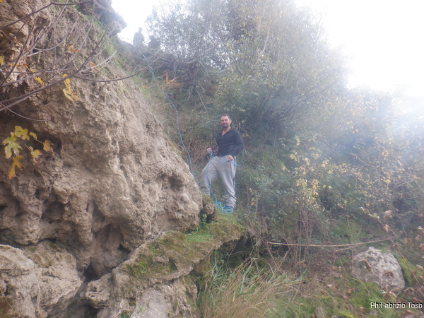 Continuo a spostarmi lungo la parete tra alberi, rami spinosi e altre piacevolezze. Ogni tanto trovo un buco che sembra interessante ma che poi si rivela un nulla di fatto.