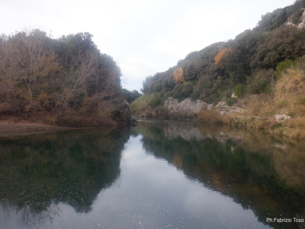 Qua il Fiora fa un’ampia curva, il posto e’ uno spettacolo, ci fermiamo ad ammirarlo.