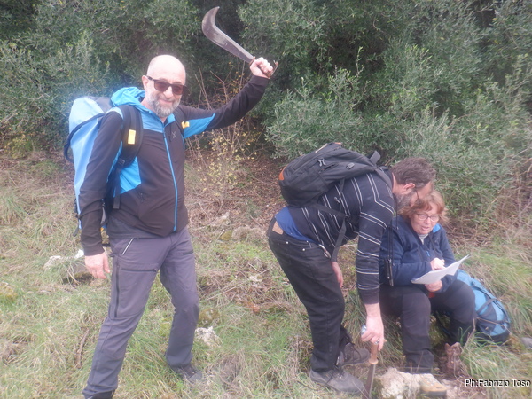 Un rapido spostamento con le vetture ci porta al nuovo punto di sosta dove prendiamo un comodo tratturo in piano che ci portera’ ad una parete dove ritrovare grotte gia’ in catasto. Una, la piu’ importante, a quanto dice Gabriele, e’ quella di Don Simone.