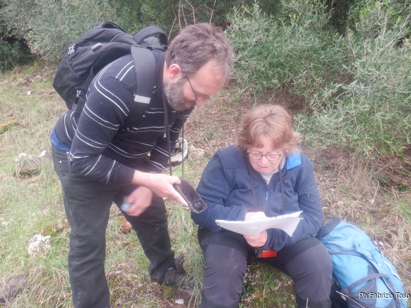 Maria e Gabriele studiano le mappe che si sono portati mentre con Claudio ne approfittiamo per una foto spiritosa.