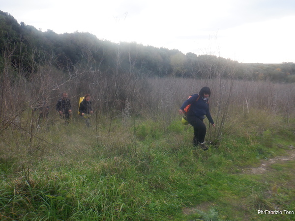 Finita la pausa riprendiamo a camminare per tornare alle macchine. Attraversiamo un “bosco” di sterpi secchi di chissa’ quale pianta fino a uscire nei pressi del sentiero che porta alla sterrata dove sono parcheggiate le auto.