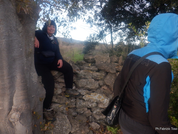 Arriviamo col sentiero fino ad affacciarci alla parete che cercavamo quindi pieghiamo a sinistra fino a incontrare un muretto. Qua Maria, che inizia a sentire la stanchezza, ci abbandona per tornare all’auto.
