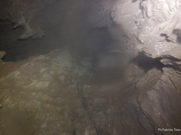 Io lo saluto e proseguo per la risalita. Passo il solito cunicolo con qualche sbuffo perche lo zaino non vuole proprio collaborare e si incastra dovunque. Mentre lo maledico a gran voce formulo il pensiero: “Mai piu’, va bene uno zaino pesante ma non cosi’ largo e ingombrante”.