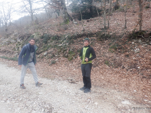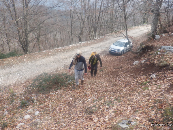 La mattina dopo una sana colazione al solito bar Semprevisa, saliamo alla grotta. Ecco i miei amici, Luca si riconosce dalla barba e dal sorriso.