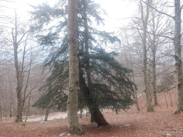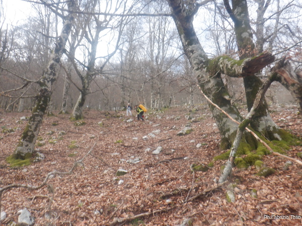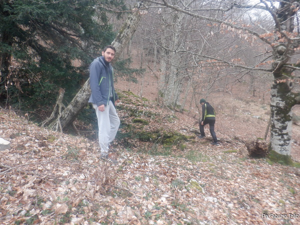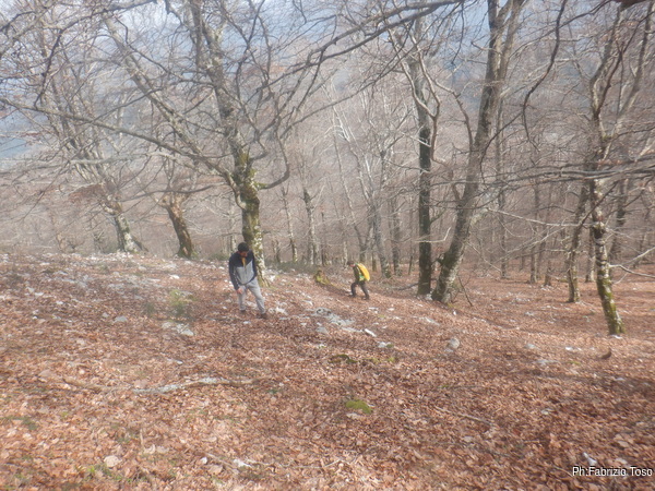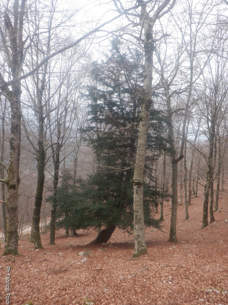 L’indicazione che ricordo e’ quella di salire fino al terzo tasso e poi proseguire in quota sulla destra. Salendo l’aspra erta verifichiamo con fatica che l’indicazione era fallace. I tassi da contare non sono tre ma bensi’ quattro, con una sofferta differenza di almeno 20 metri di altitudine. Tra l’altro, leggendo la cartina a casa, mi sono accorto che trattasi di tassi monumentali, rispetto a loro!