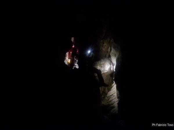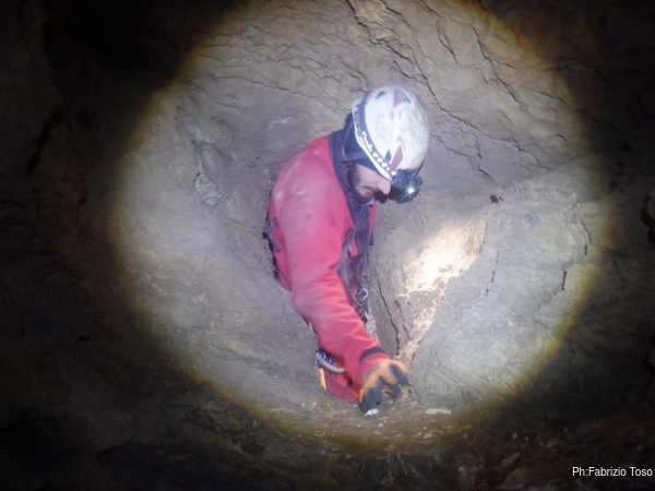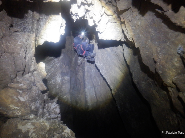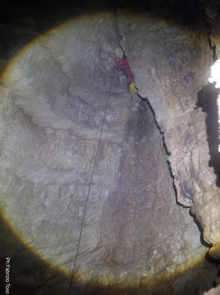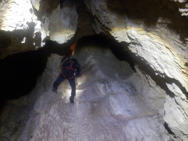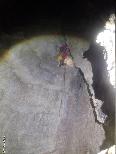 I miei amici scendono e mostro loro il fronte esplorativo. Alessio dopo qualche minuto decide di iniziare a risalire.