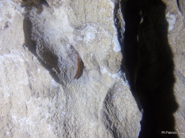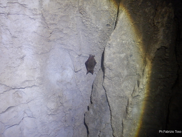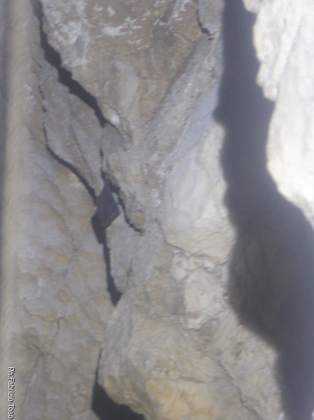 Scendendo il pozzo successivo incontro un un pipistrello con le orecchie, mi incuriosisce quindi gli faccio velocemente una foto cercando di non infastidirlo piu’ di tanto.
