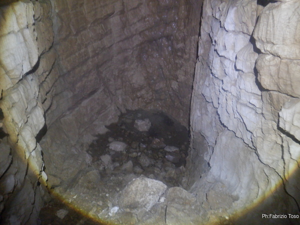 Pozzo dopo pozzo arriviamo alla base di quello che fino a poco tempo fa costituiva il fondo della grotta.