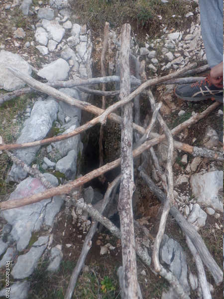 Infatti poco sopra il piano strada Luca si inerpica e trova un pozzo dalle dimensioni generose. Penso sia proprio lui