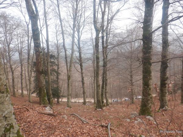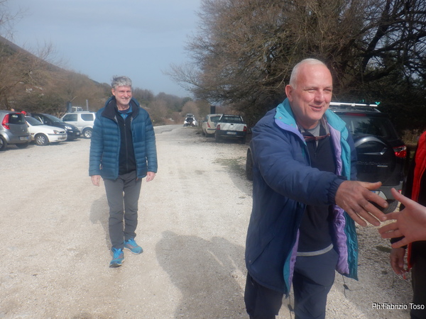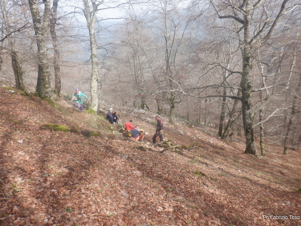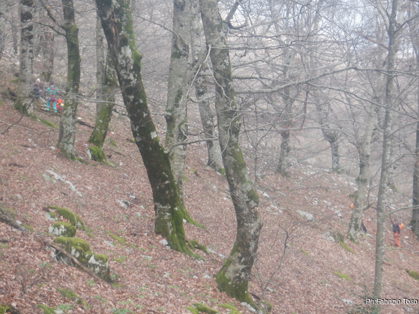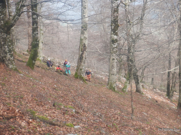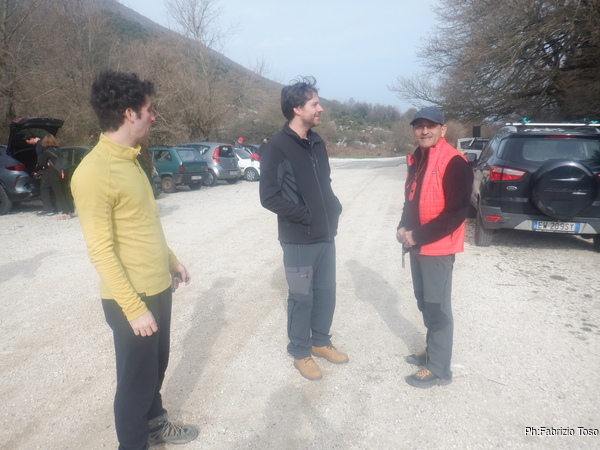 La mattina ci si incontra tutti a Pian della faggeta, ci sono tante facce note, c’e’ anche Francesco che da poco ha terminato il corso e ben due Fabii uno di fronte all’altro.