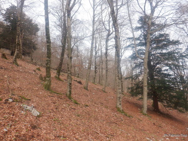 Eccezionalmente sono pronto prima del resto del gruppo, ne approfitto per partire prima, voglio fare un giro largo a prendere le foto di una grotta vicina al pozzo della faina. Si tratta del II CATRAVASSO SOPRA CESA SCHIUMETTA (LA821), finora non lo avevo mai notato negli avvicinamenti alla faina e stavolta voglio proprio trovarla.