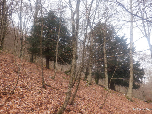 La grotta che cerco deve essere nelle vicinanze di questi tassi, salendo sulla loro sinistra. Quando finalmente avvisto la grotta mi accorgo di aver abbondato troppo con lo spostamento a sinistra. Mentre mi avvicino, ne approfitto per guardare alcuni punti interessanti. Gratifico la grotta ritrovata con una serie di foto poi mi avvio verso la faina.