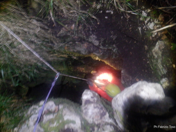Mentre Fabio sale aspetto Federico e gli faccio un paio di foto mentre esce dal pozzo.
