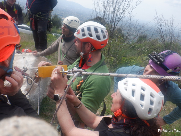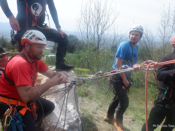 Un gran bel ripasso delle tecniche per costruire paranchi e teleferiche sotto la guida di un preparatissimo e appassionato Luciano nella sua nuova veste di Istruttore.