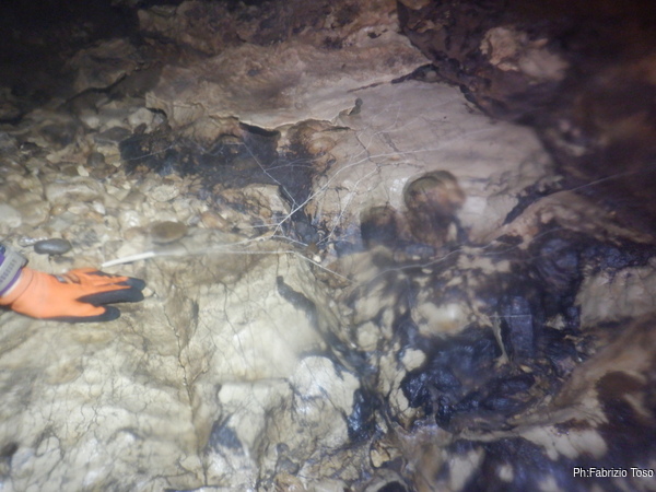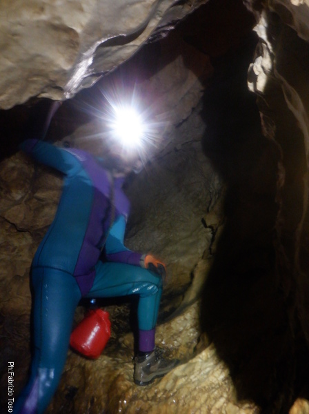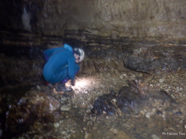 Luca sale un poco piu’ in alto per illuminare meglio il lato opposto, dice che sembra proseguire. Sara’ da vedere con piu’ calma. Ora dobbiamo tornare…e non solo perche’ il tempo stringe, sinceramente inizio ad accusare stanchezza, e’ prudente ritirarsi per tempo.