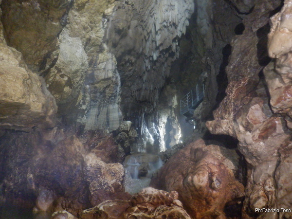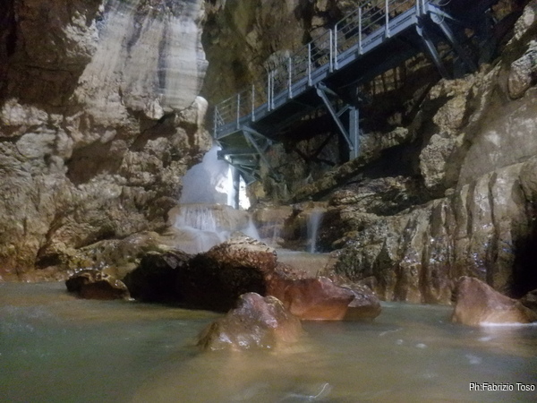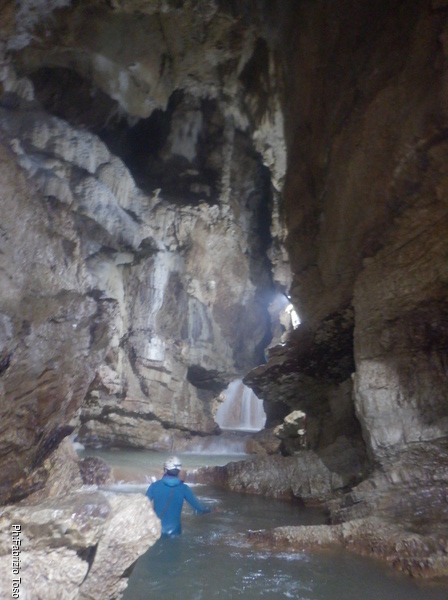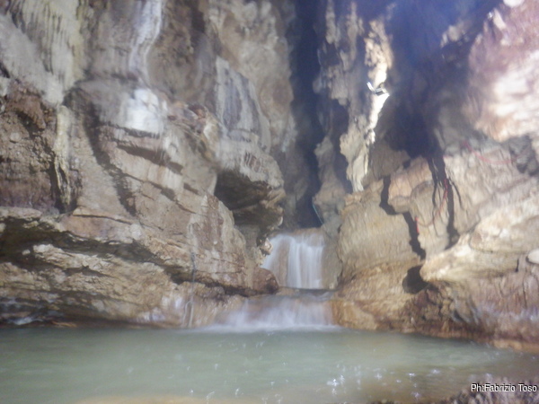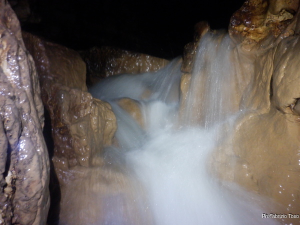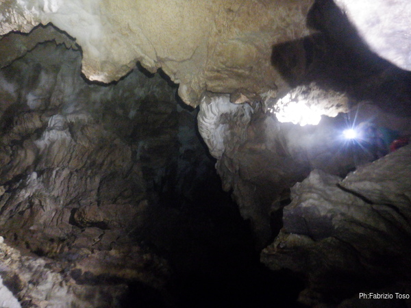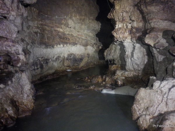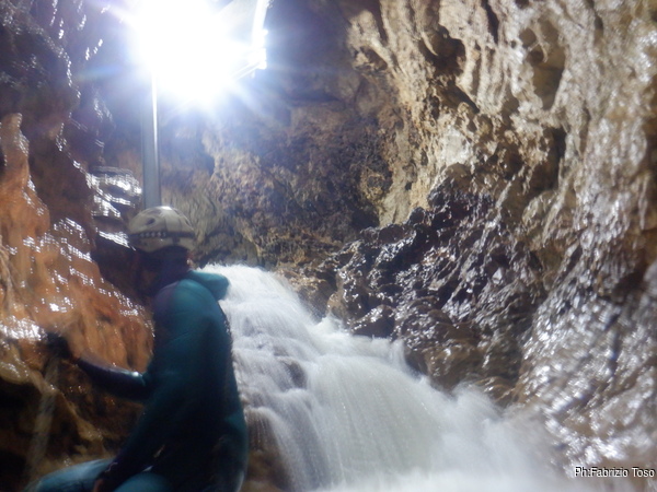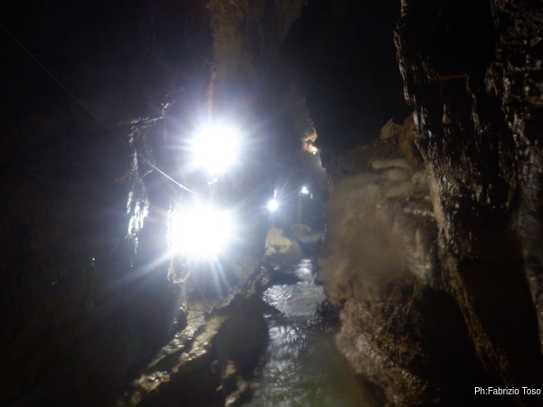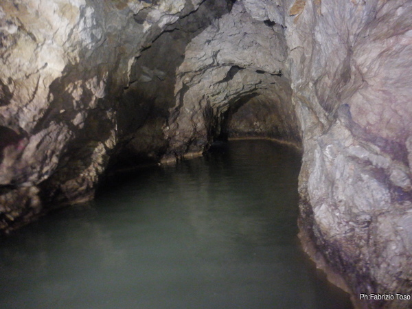 Questo primo tratto di galleria e’ artificiale, e’ stato scavato per oltrepassare il tratto iniziale di grotta con i sifoni che non sono transitabili senza attrezzatura da sub. Anche se non naturale fa comunque un bell’effetto, ci manca solo un cartello con: “Lasciate ogni speranza o voi che entrate”!
