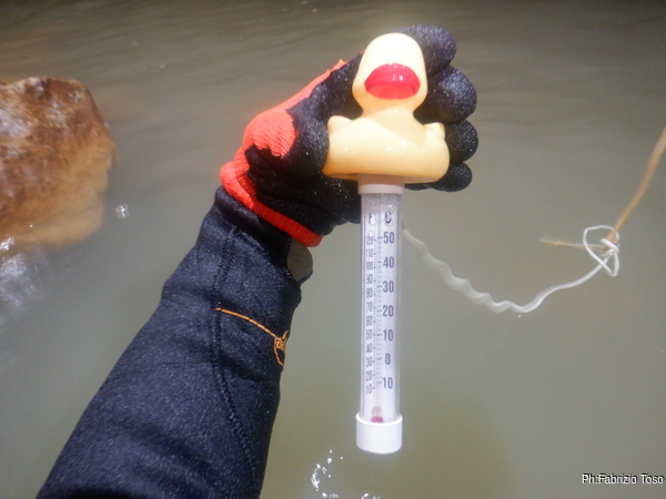 Mistero subito risolto, e’ una paperella termometro! Ne approfitto per apprendere che la temperatura dell’acqua e’ di ben 16 gradi, piu’ che buona.