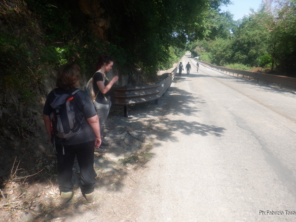 Tutti insieme ci spostiamo dove iniziera’ la nostra passeggiata. Trovato parcheggio ci riuniamo tenendoci rigorosamente all’ombra, gia’ fa un caldo notevole.