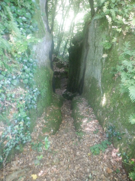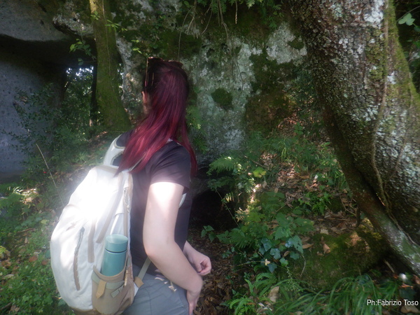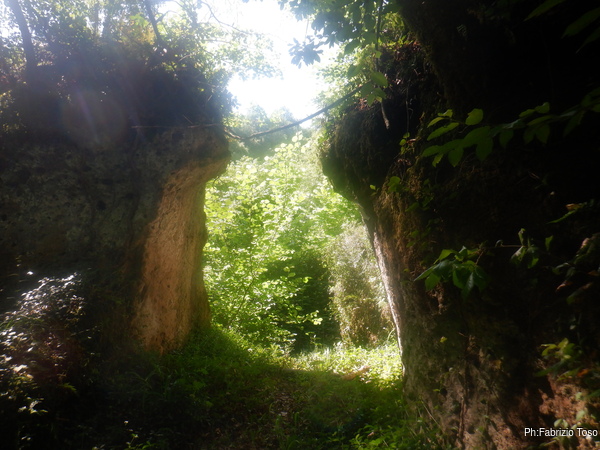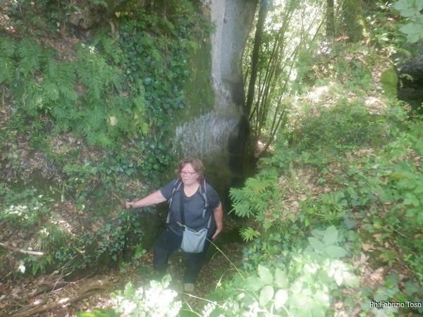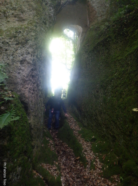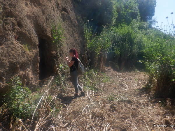 Arriviamo davanti a un passaggio particolare, sempre scavato nel tufo. Linda, che e’ archeologa, sentenzia che questa e’ una “tagliata”. Prendo per buono il termine anche se a me riporta alla mente solo cose commestibili.