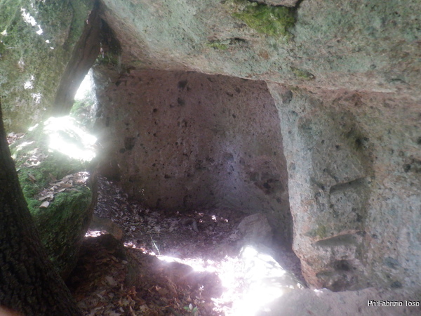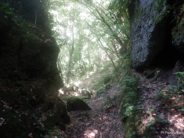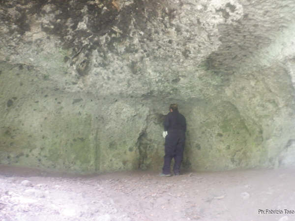 Intorno a noi niente calcare ma pareti di tufo e ogni tanto un qualcosa scavato dall’uomo.