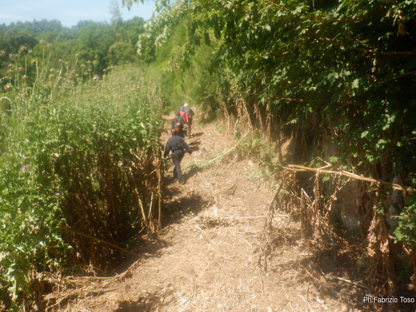 Le nostre guide lontane ci danno indicazione di scendere la tagliata e proseguire per il sentiero. Questo ci avviamo a fare.