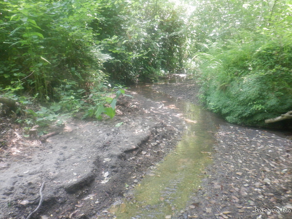 Al fiumiciattolo mi lascio tentare e vado a fare un rapido giro lungo il suo corso alla ricerca di buchi interessanti, trovo nulla ma in compenso mi respiro un paio dei moscerini dal nugolo che si alza in volo al mio passaggio. Devo proprio togliermi il viziaccio di respirare a bocca aperta!