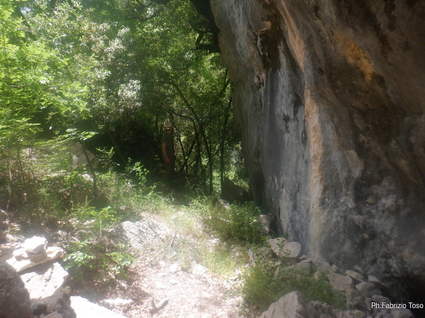 Una volta pronti ci avviamo verso il sentiero. Leggendo i cartelli messi sul sentiero scopro che stiamo andando verso una falesia. La nostra intenzione e’ ricercare, e possibilmente ritrovare, la Grotta di Iacucera(LA1194).