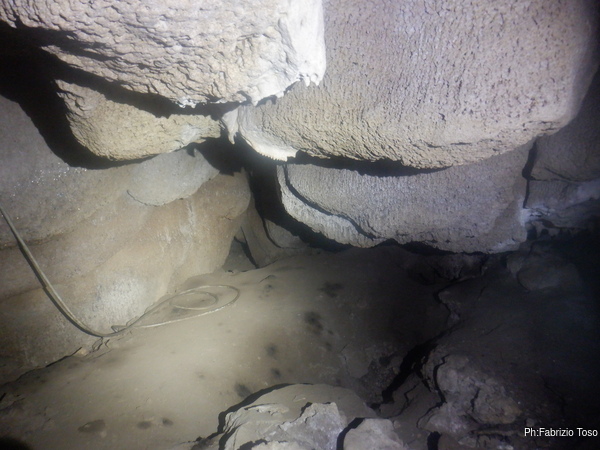 Martina, che oggi e l’esploratrice titolare, cerca di verificare una eventuale prosecuzione. Purtroppo trova nulla. Peccato, l’aria fredda che esce da questo buco sembrava promettere bene.