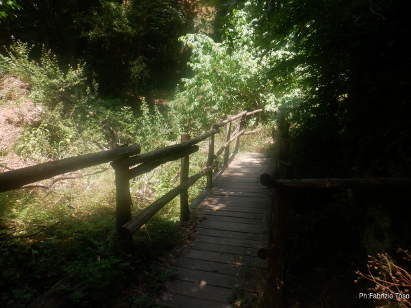 Ad ogni modo il sentiero e’ in buone condizioni e soprattutto in buona parte all’ombra. Ogni tanto passiamo dei ponti in legno che ci evitano di traversare dei piccoli corsi d’acqua.