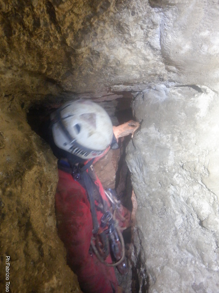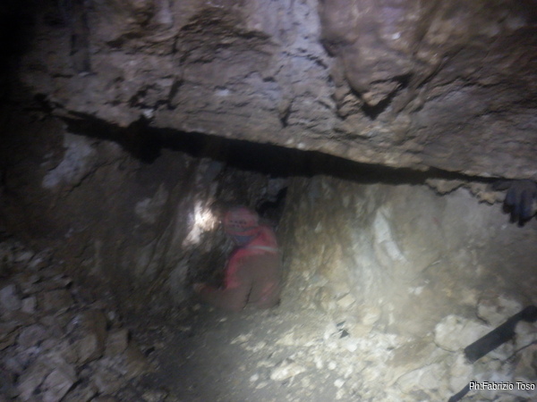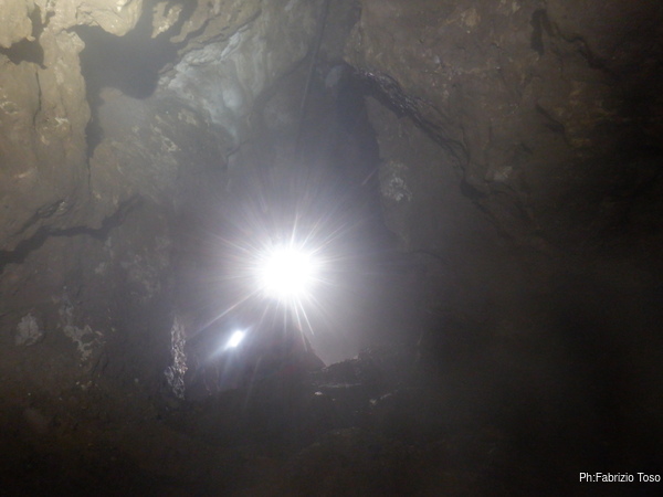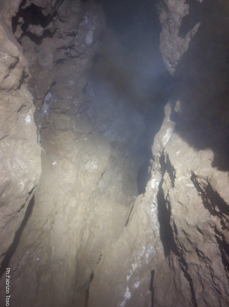 Non so se ho voglia di seguire Luca…forse anche no. Tra l’altro devo stare attento a non stancarmi troppo, sono ancora convalescente. Appena ripreso fiato quindi avverto Nerone che torno indietro a raggiungerlo. Con qualche grugnito e molti sbuffi passo in senso contrario la meandrica strettoia per tornare al pozzo in compagnia di Nerone.